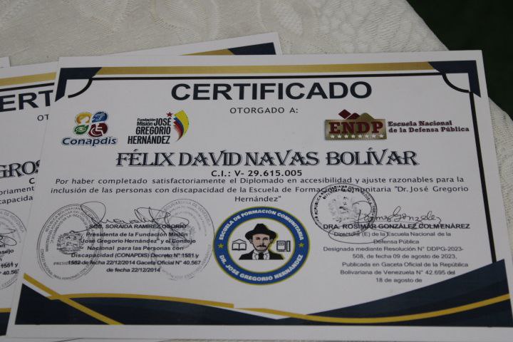 Uno de los hitos centrales de la celebración fue la entrega de certificados a los participantes y facilitadores del diplomado en “Accesibilidad y Ajustes Razonables para la Inclusión de las Personas con Discapacidad”. Esta formación académica fue posible gracias a la alianza estratégica entre la Escuela Nacional de la Defensa Pública, la Escuela de Formación Comunitaria Dr. José Gregorio Hernández y el CONAPDIS. Este diplomado refuerza el marco técnico y legal necesario para que los espacios públicos y privados se adapten a las necesidades de la población con discapacidad, promoviendo una sociedad sin barreras arquitectónicas ni actitudinales.